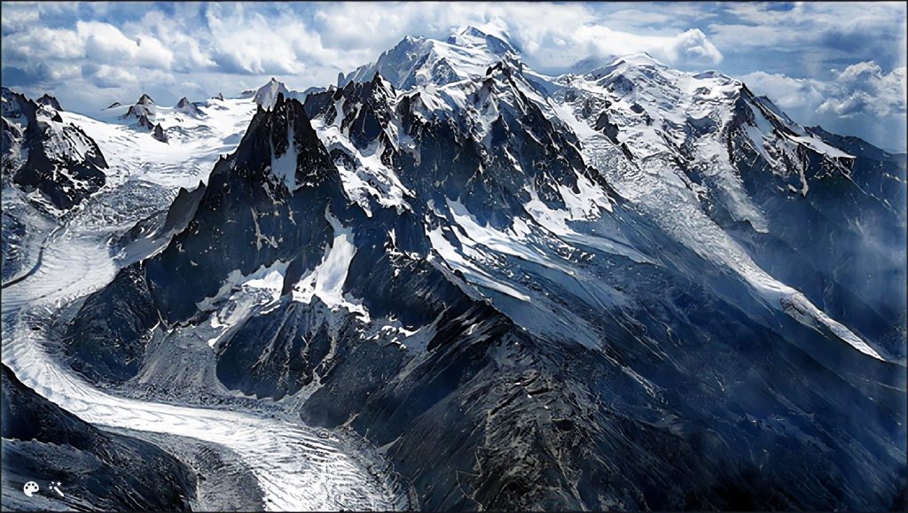 Pilote et photographe, Spelterini immortalisa en effet en une série d’images sur plaques de verre, le glacier de la mer de Glace qui se lance spectaculairement du massif du Mont Blanc.