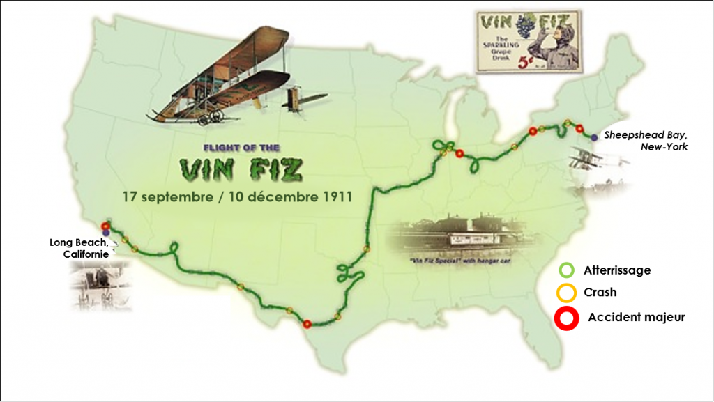 À cet égard, le site Internet Vin Fiz Revisited reconstitue, sur des cartes aériennes actuelles, les différentes portions de l’expédition de Calbraith Perry Rodgers :