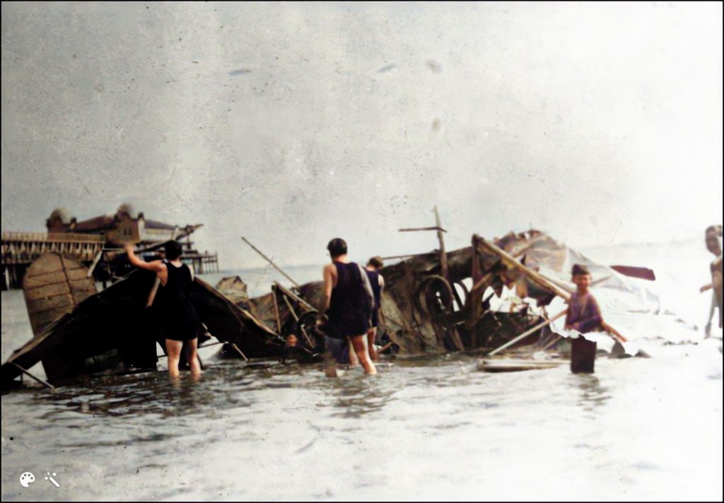 D/Le pilote avance de crash en crash, comme ici à Huntington, en Indiana (référence/Photo sublimée et colorisée).