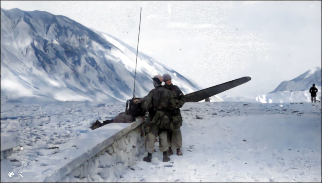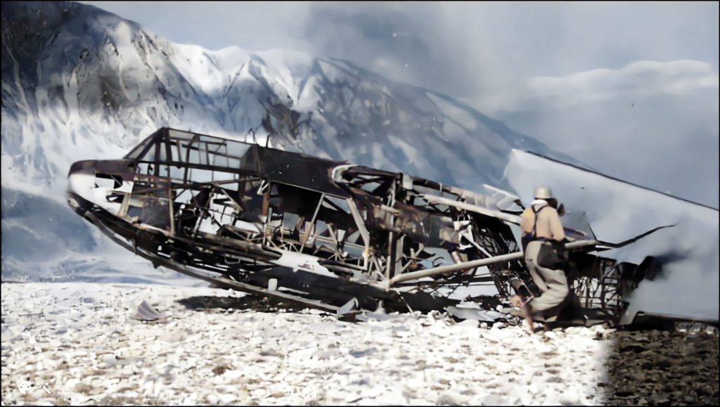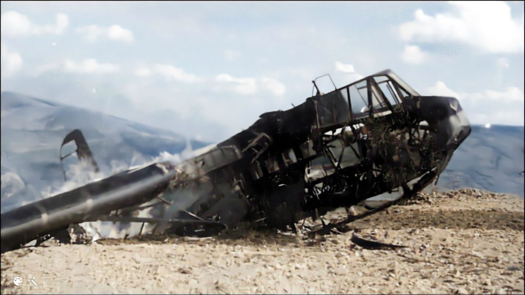 Pas le choix, il faut y aller. On ordonne à douze hommes de retenir l’appareil pendant que Gerlach fait tourner le moteur de son « Storch« à plein régime. Enfin, le pilote abaisse sa main… signalant aux hommes de lâcher l’avion qui, cahin-caha, cahote sur le terrain de fortune, sans pouvoir quitter le sol. On s’approche du rebord du plateau, plus moyen de s’arrêter… L’avion se soulève, mais retombe sur l’herbe où il heurte un rocher, puis capote en tombant vers le précipice.