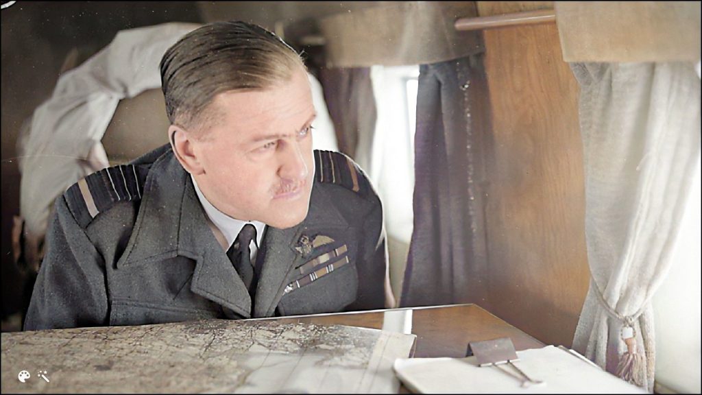 L’Air Chief Marshal Trafford Leigh Leigh-Mallory survole la Normandie à bord d’un C-47 Skytrain Dakota (Google Art & Culture/photo sublimée et colorisée).