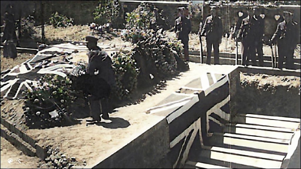 Les funérailles officielles se déroulent en présence d’un petit détachement militaire britannique (référence/photo sublimée et colorisée).