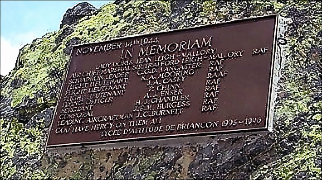 Pendant la deuxième partie de la seconde guerre mondiale, plusieurs bombardiers alliés (et allemands) sécrasent dans les Alpes – principalement du fait d’une mauvaise météorologie — faisant de nombreuses victimes, le plus souvent inhumées dans les cimetières locaux. Aujourd’hui, Robert Merloz, Pilote de montagne (RM-PDM) relate un accident survenu en Isère à la mi-novembre 1944, dans lequel ont péri le plus haut gradé de la Royal Air Force britannique, son épouse et cinq membres d’équipage…