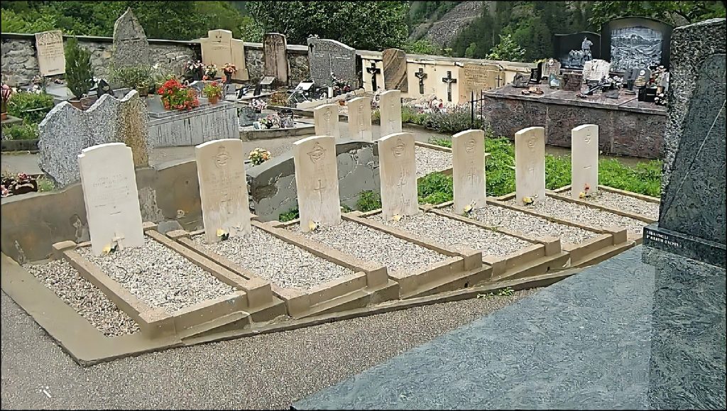 Détail des 10 tombes alignées dans le cimetière communal d’Allemont
