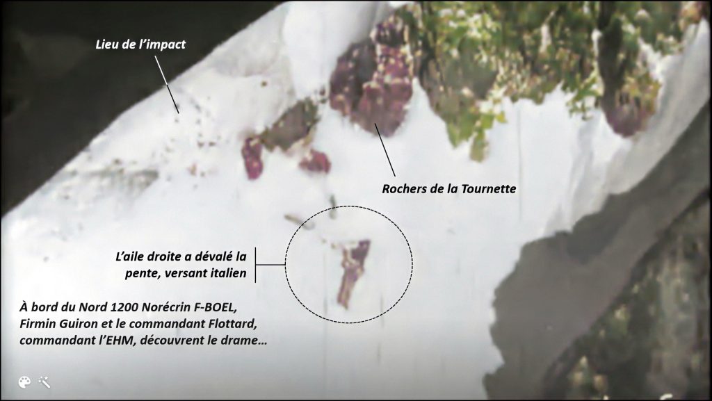 Rendues difficiles par une météo épouvantable, les recherches aériennes s’organisent malgré tout. Les aviateurs préparent d’éventuels parachutages, si bien que, le lundi, dès 7 h 30, le plus célèbre des aviateurs de haute montagne, le chef-pilote Firmin Guiron, décolle de Passy, emmenant à bord de son appareil le chef de bataillon Flottard, commandant l’École de haute montagne (EHM) de Chamonix, et chargé de coordonner les opérations. À leur retour, on peut reconstituer le drame avec une marge suffisante de probabilité : l’appareil a buté à une quinzaine de mètres sous l’arête sommitale, mille mètres au-dessus du refuge Vallot. Il y a perdu son aile droite, qui a glissé sur le versant italien puis, rabotant la haute neige couvrant l’arête, a comme éclaté, couvrant de ses débris un kilomètre du versant français. À quinze mètres près, le Malabar Princess était sauvé !