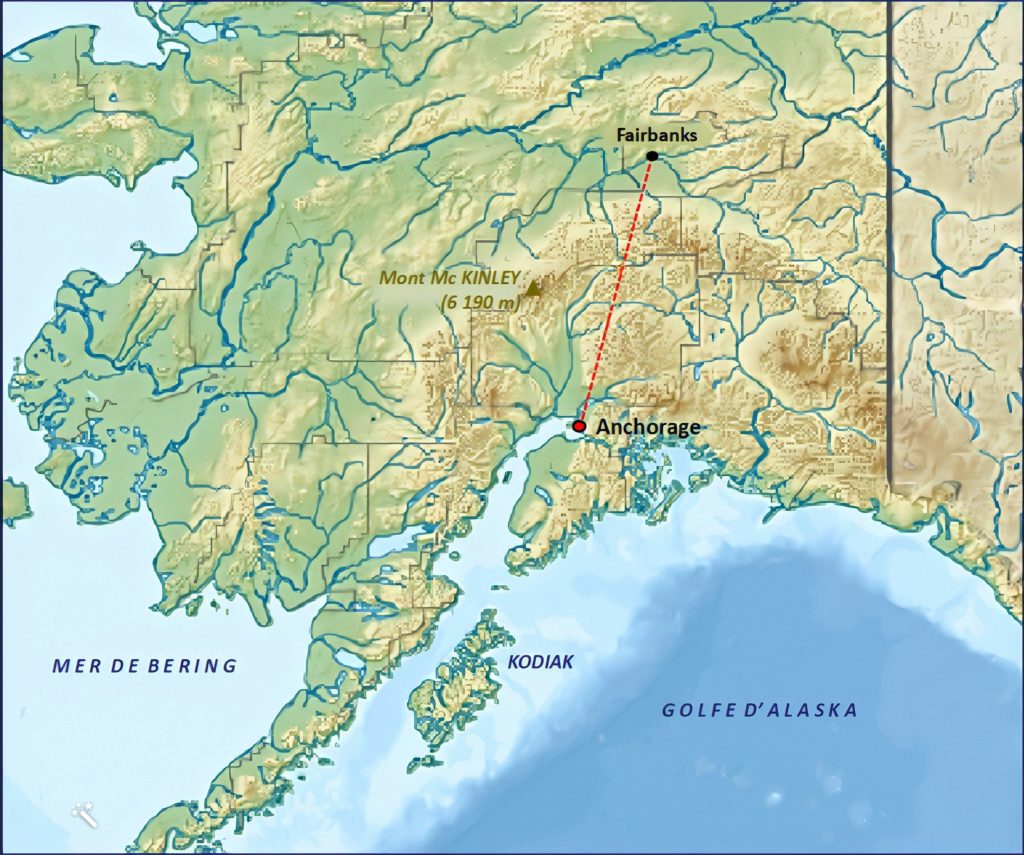 Le lundi 18 septembre 1944, le Douglas C-47 « Skytrain« (DC-3) n° 43-15738 flambant neuf de l’Air Training Command (Commandement de l’instruction aérienne) de l’United States Army Air Force (U.S.A.A.F.) décolle de Elmendorf Air Force Base (AFB), à Anchorage (côte alaskaine), avec 19 personnes à bord (principalement des permissionnaires), pour se rendre au Ladd Army Airfield, à Fairbanks (au centre de l’Alaska). Si l’appareil est bien militaire, le pilote et le copilote sont des civils appartenant aux Northwest Airlines.