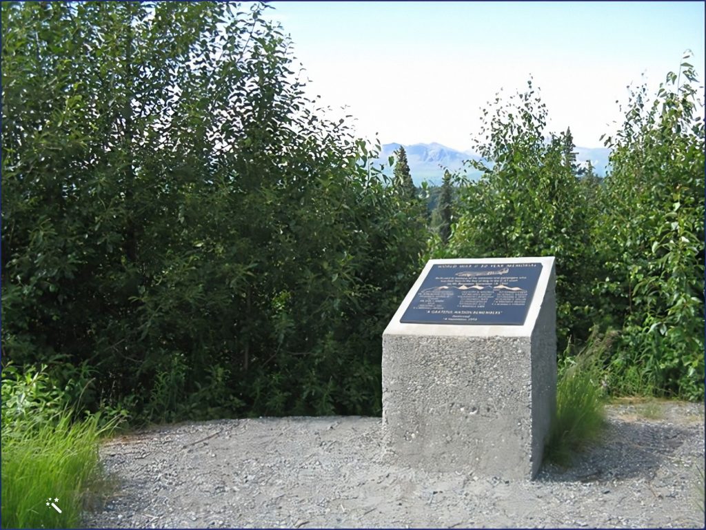 Le dimanche 18 septembre 1994 (pour le cinquantenaire du crash, donc), une plaque est apposée sur une stèle située au bord de l’aire de repos de la George Parks Highway, dans le Denali State Park (ses coordonnées sont N 62° 53.220 W 149° 47.199 / 6V E 358336 N 6976066).