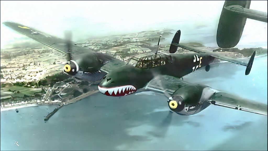 Cette gueule est inspirée de celle figurant sur les Messerschmitt Bf 110 de la Haifisch Gruppe (Groupe des Requins, en fait le II/ZG 76) de la Luftwaffe. On n’invente rien…