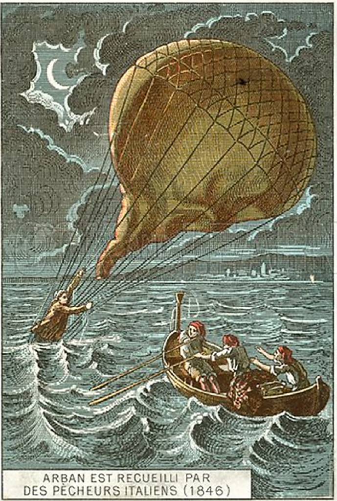 Le dimanche 2 septembre 1849, à bord d’un ballon à hydrogène, Francisque Arban réalise la première traversée des Alpes. Il s’envole du Château des Fleurs, à Marseille, à 18h 30, survole le massif de l’Esterel à 4 000 mètres d’altitude, puis le mont Viso à 4 600 mètres d’altitude à 1 h 30 du matin le lundi 3 septembre pour atterrir à 2 h 30, à proximité d’une ferme du village de Pion Porte, près de Stupinipi, à environ 6,4 kilomètres à l’ouest de Turin.