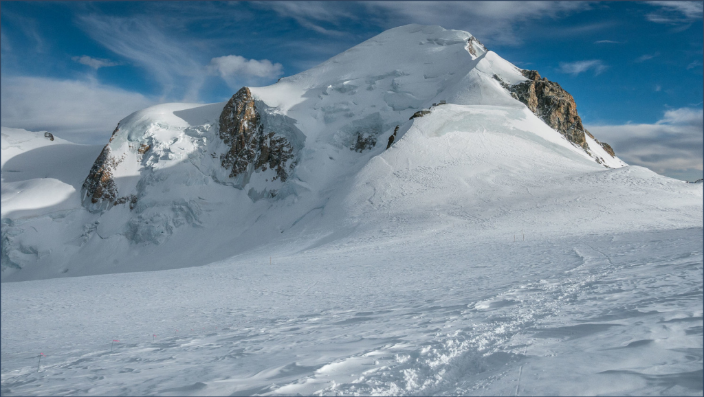 L’avion se dirige ensuite vers le col du Dôme, sous les pentes du mont Blanc, lieu mythique pour tout aviateur de montagne depuis que le Genevois François Durafour s’y est posé le samedi 30 juillet 1921.. L’atterrissage sur une neige dure est nominal et l’avion s’arrête à environ 100 mètres sous le col, en équilibre en travers de la pente, dans un dévers de 10° environ. Une fois le moteur coupé, l’équipage souhaite descendre de l’appareil mais, pour ouvrir les portières, il faut rentrer complètement les volets.