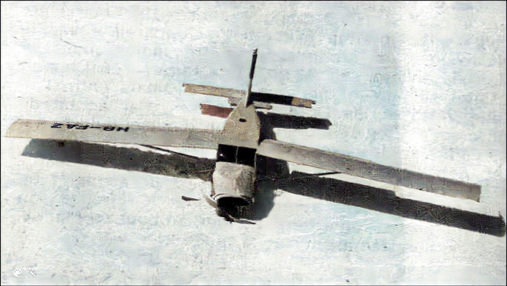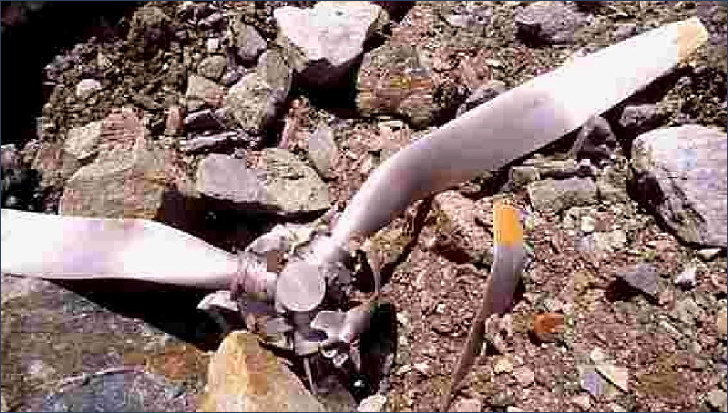 Par chance, l’hélice s’était repliée sous l’avant du fuselage, constituant un piolet providentiel qui arrêta la glissade de l’avion, épargnant ainsi à l’équipage un destin fatal.