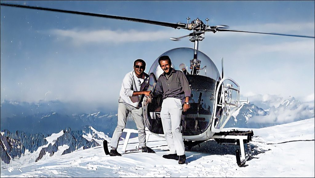 Comme chaque automne, Michel et Robert assistent à la Soirée de la montagne, Salle Pleyel à Paris. Cette session 1958 consacre Hermann Geiger, pionnier suisse de l’aviation et du sauvetage en montagne. À la fin de la conférence, les deux amis entament une discussion enflammée avec « l’Aigle de Sion », auteur du livre « Pilote des glaciers ». De ce moment date la naissance d’une vocation résolument montagnarde du projet commun.