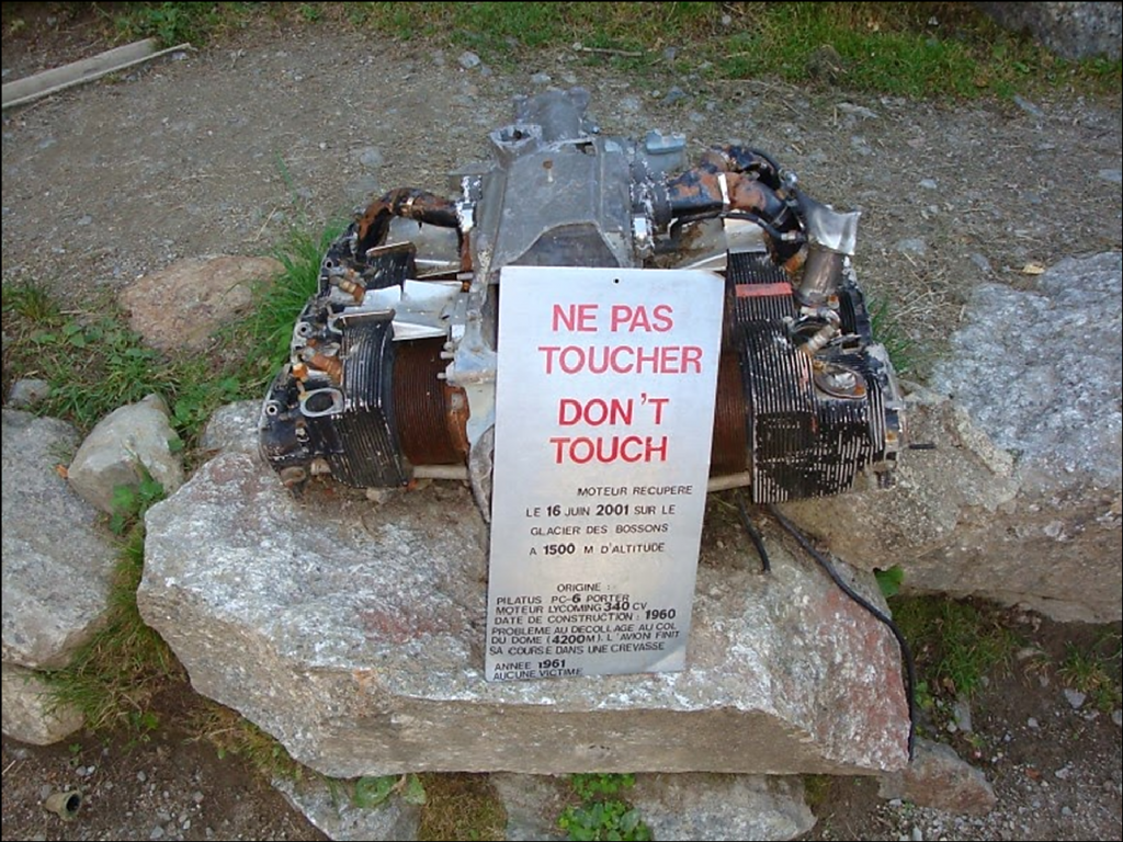 Après enquête, il s’agit bien de reliques du Pilatus PC-6 Porter HB-FAZ qui auront mis 40 ans pour parcourir environ deux kilomètres à l’intérieur du glacier, les restes du fuselage complètement broyé, le moteur, l’hélice et la roulette de queue seront ainsi découverts.