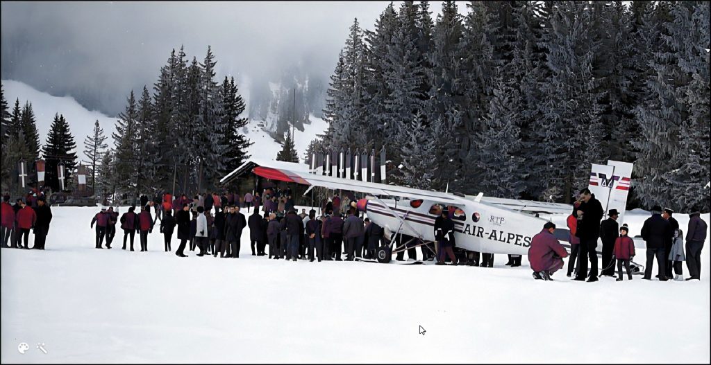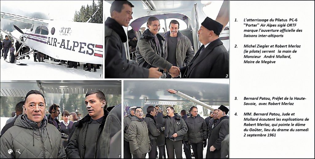 Le jour dit, une foule relativement nombreuse et tout un aréopage de personnalités locales, départementales et nationales sont regroupées et attendent l’atterrissage du Pilatus. Éditée en 2017, la brochure intitulée Cinquante ans d’aviation à Megève relate l’événement :