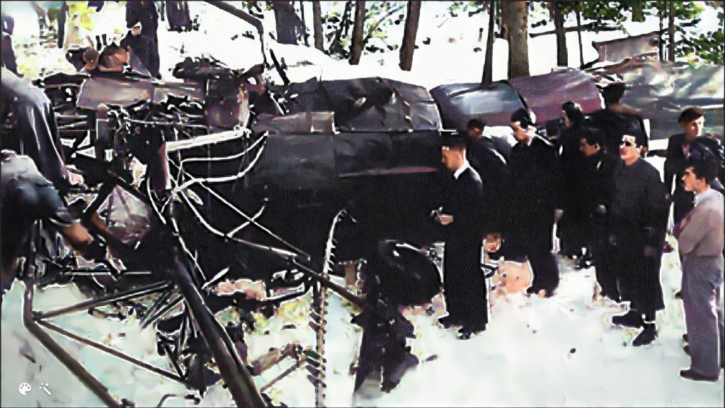 Les autorités locales et les secouristes arrivent sur les lieux du drame et constatent qu’il n’y a pas de survivants (en recherche de crédit photo/photo sublimée et colorisée).