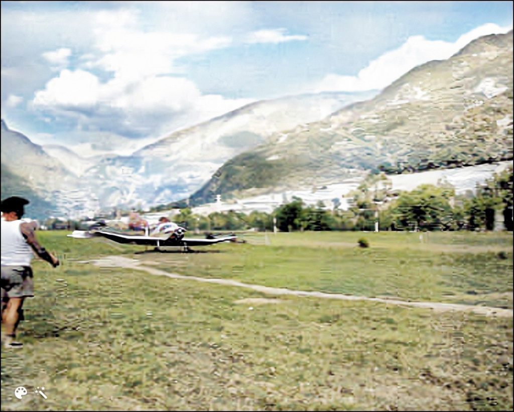 Cet appareil est un ‘Jodel’ D112, un modèle simple, presque artisanal, mais fiable et très apprécié par les amateurs d’aviation de l’époque, équipé d’un moteur ‘Continental’ de 65 CV et avec des ailes en forme de dièdre lui conférant une silhouette caractéristique – comparable à celle d’un ‘Stuka’ ! Il pèse environ 500 kilos et peut atteindre les 140 kilomètres/heure. Un poids plume comparé au ‘Broussard’. La dernière étape, entre Lérida et Andorre, commence à sept heures du matin le 11 août : « Nous sommes arrivés en Andorre après une heure de vol. Comme on n’y était jamais allés, on ne savait pas où atterrir. Heureusement, la visibilité était excellente et la carcasse de l’avion de Moulène nous a servi de point de référence. Nous avons effectué des passages au-dessus du camping, jusqu’à ce que les campeurs se rendent compte de nos intentions, plient les tentes et éclairent la piste. L’atterrissage proprement dit constituait une petite manœuvre en soi : au niveau de la mer, le ‘Jodel’ n’a besoin que de 200 mètres de piste mais, à 1 000 mètres d’altitude, la situation se complique quelque peu. Mais nous avons réussi. »