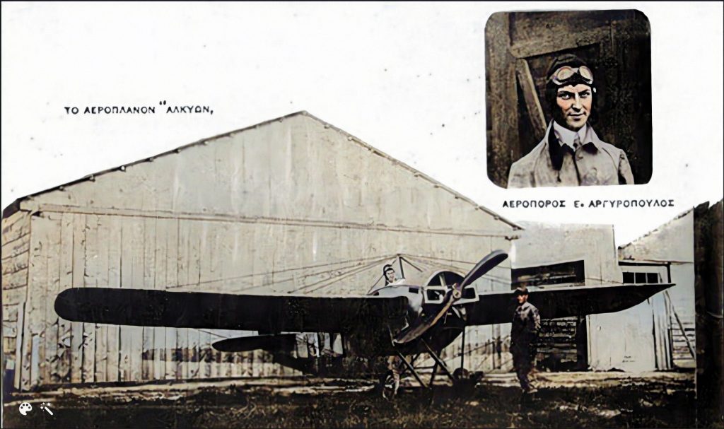 Après avoir décollé du quartier Rouf, à Athènes, il effectue un vol de 16 minutes autour de la ville, tout en survolant l’Acropole et le quartier de Thissio. Une heure plus tard,il accomplit un second vol, cette fois-ci avec le Premier ministre Eleftherios Venizelos, le ‘Chantre du panhellénisme’, comme passager. C’est à partir de ce moment que le pilote baptise son appareil ‘Alkyon’ (‘Alcyon’), certaines sources affirmant qu’il s’agit-là d’une initiative du Premier ministre en personne…