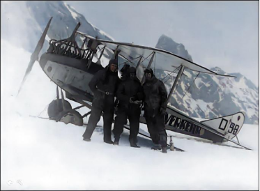 9 mars 1929 / Plaqués par le vent contre les pentes des Andes, Mermoz et Collenot se posent brutalement sur un plateau rocheux. Ils mettent quatre jours à réparer leur avion et ne décollent que le 13 mars, en prenant des risques inconsidérés.