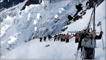 20 mars 1957 + Une fois descendus à la Jonction, les corps de Vincendon et Henry sont redescendus à Chamonix par deux hélicoptères Alouette II pour être remis aux autorités et aux familles.