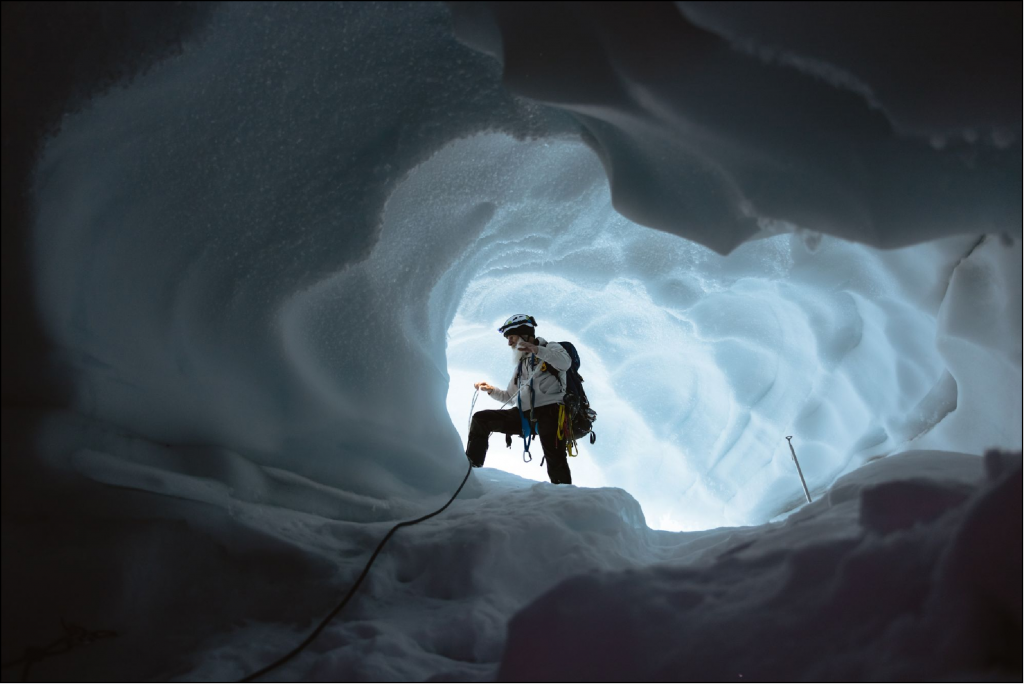 Avant de tenter d’atterrir sur un glacier, le pilote doit d’abord effectuer un passage bas pour chercher des dépressions dans la neige molle, car celles-ci peuvent masquer une crevasse pouvant facilement engloutir un train de marchandises, sans parler d’un petit Piper Super Cub. Un autre problème émerge souvent, lorsqu’une légère couverture nuageuse se confond avec la surface de la neige molle en plein jour. L’œil humain ne peut pas distinguer la surface du glacier et les atterrissages sont presque impossibles dans ces conditions. C’est pourquoi Don emporte toujours plusieurs petites branches d’épicéas, qu’il jette en ligne, ce qui fournit une ligne sombre pointillée marquant l’élévation de la surface du glacier.