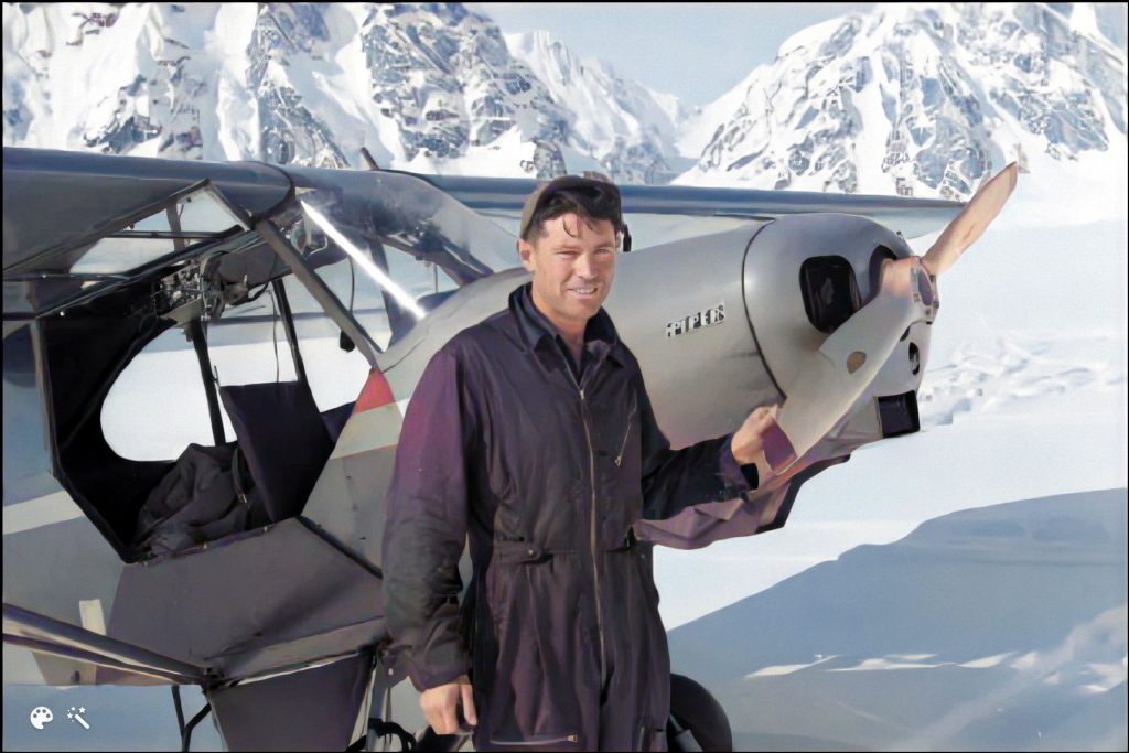 Donald « Don » Edward Sheldon est un fameux pilote de brousse (« Bushpilot« ) alakain et l’un des premiers aviateurs à mettre au point l’atterrissage sur glacier, aux abords du mont McKinley, dans les années 1950. Unanimement reconnu pour ses compétences de pilote de montagne et des glaciers, il a secouru de nombreuses personnes en difficulté et s’est illustré, à la fin de sa vie, en organisant des excursions autour d’ un refuge qu’il a lui-même construit sur un éperon rocheux au sommet du glacier Ruth, au-dessus de l’amphithéatre auquel les autorités locales on donné son nom. Une destination que tout amoureux de la montagne ne peut que souhaiter connaître et apprécier…