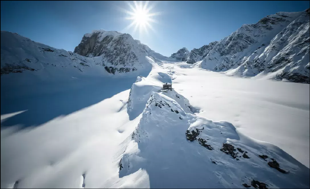 Dans les années 1960, les affaires de Don Sheldon sont florissantes et il a mis assez d’argent de côté pour réaliser un projet hors du commun. En effet, au détour de ses vols autour du Mont McKinley, le pilote repère une aire de posé sur glacier pouvant servir de point de départ à des randonnées en peau de phoque ou en raquettes, où il établit un camp de toiles.